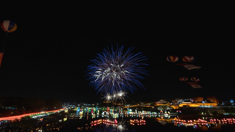"진주대첩"은 1592년 진주성을 침공한 2만 왜군을 충무공 김시민 장군이 3,800여 명 병력으로 물리친 전쟁이다. 풍등을 하늘에 올려 횃불과 함께 남강에 띄워 남강을 건너는 왜군을 저지히는 군사 전술을 사용했다. |