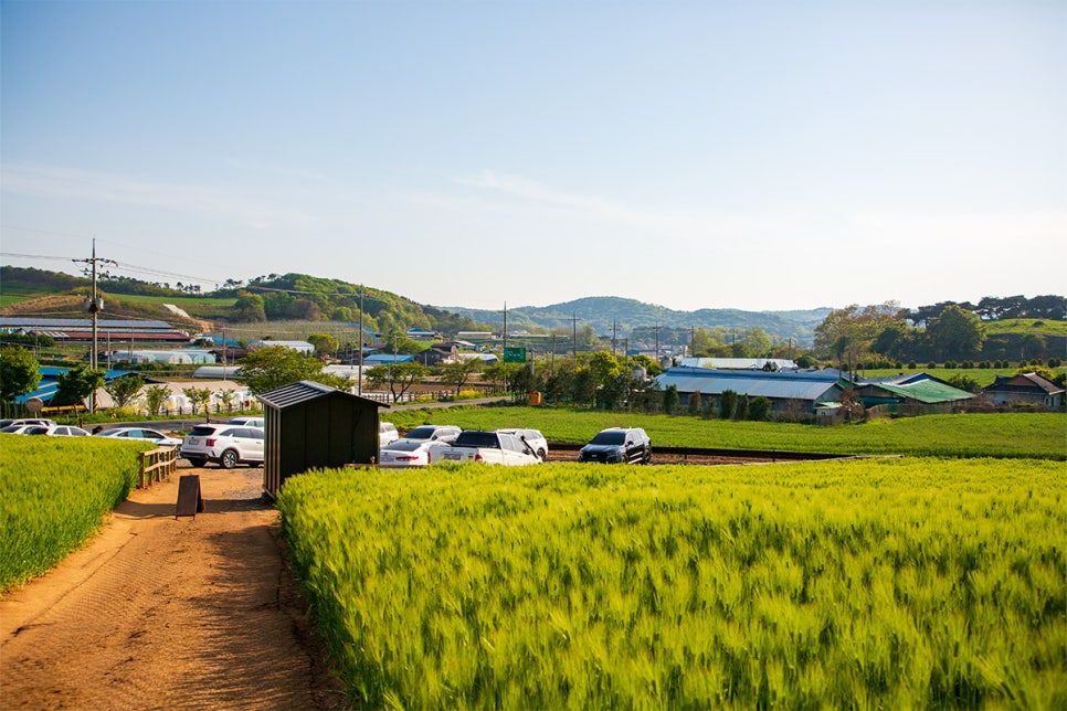 천북면 청보리밭은 폐목장을 활용해 조성된 특별한 공간이다.언덕배기 전체가보리밭으로 조성되어 4월~5월은 푸른 청보리로 가득한 연초록색 물결로,6월은 황금빛 보리밭으로 변신한다.
