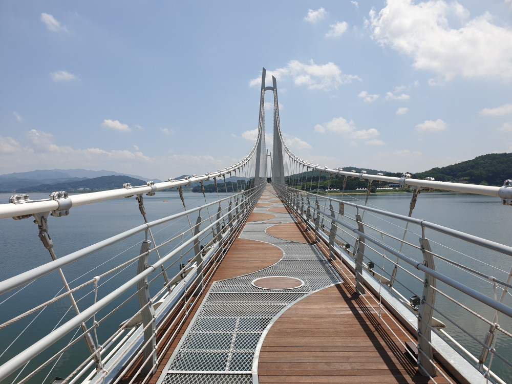 탑정호 출렁다리는 총 길이 600m,다리 폭 2.2m,높이 50m로 국내에서 가장 긴 출렁다리라고 합니다.